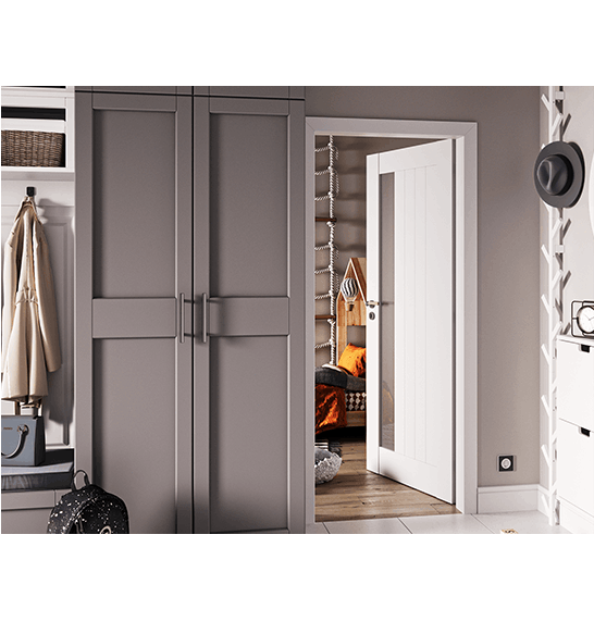 Uniwersalne drzwi INVE dostępne w kolekcji BASIC i PRESTIGE oferują unikalne rozwiązanie: możliwość montażu bez konieczności określania kierunku otwierania. W zależności od preferencji, zmiany orientacji skrzydła drzwiowego można dokonać w kilku prostych krokach bez konieczności wymiany drzwi na nowe – wystarczy przestawić opaski kątowe i skrzydło drzwiowe. Estetykę wykonania drzwi zwiększają niewidoczne otwory montażowe.
